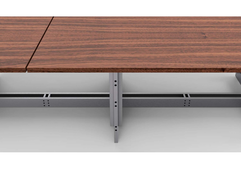 Sarpi Office designed by Carlo Scarpa for Cassina is a table made with or without integrated electrical access and cable slot located in the center of the top, with the possibility of various electrical configurations. Steel structure and wooden or glass top. Available in different finishes and dimensions.