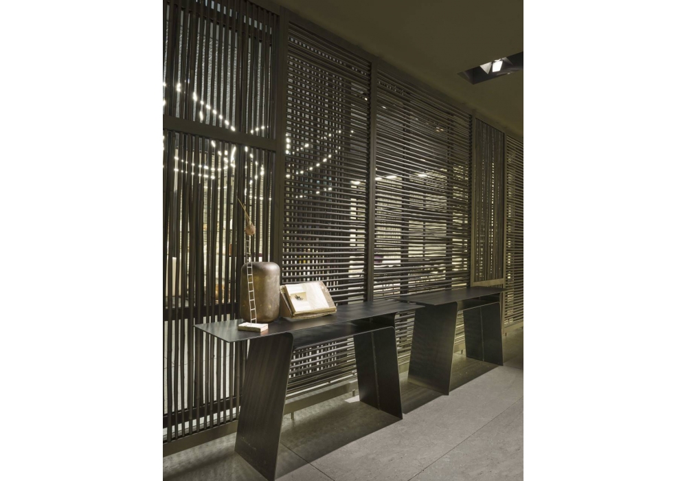 Inari designed by Mist-O for Living Divani is a console consisting of four sheet steel elements, 3 mm thick, welded together and reinforced by a central element in sheet steel 8 mm, to ensure rigidity to the whole structure. Ground support guaranteed by a “U” section shaped plastic material. Finishing with epoxy powder coating.