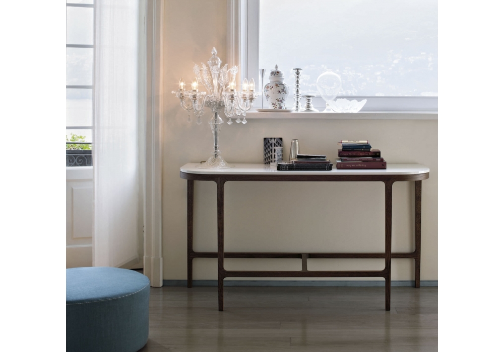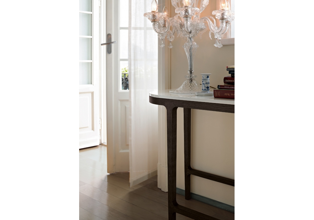 Victoria designed by Roberto Lazzeroni for Lema is a console with top in glossy or matt lacquered finishes or Carrara Marble. Structure in oak.