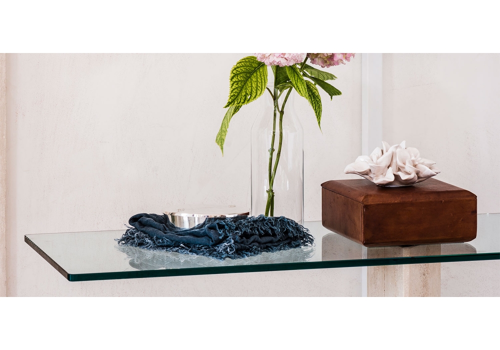 Diapason designed by Studio Diapason for Cattelan Italia is a console with base in Travertino or white Carrara marble. The rectangular or elliptical top, made of 12mm clear glass, is available in two dimensions.