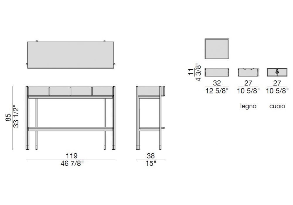 Bayus 8 designed by G. & O. Buratti for Porada is a console with frame in canaletta walnut. Metal base with Bronzoro finish and brushed brass end-feet. Proposed with four compartments with the possibility of inserting four drawers. Available in one dimension only.