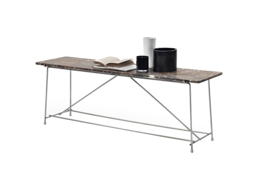 Any Day designed by Cristophe Pillet for Flexform is a console and a series of coffee tables. The Any Day console and coffee tables feature pure lines and an essential design, available in a wide variety of finishes that underline their great versatility. The frame is realized in metal and the top in wood or marble.