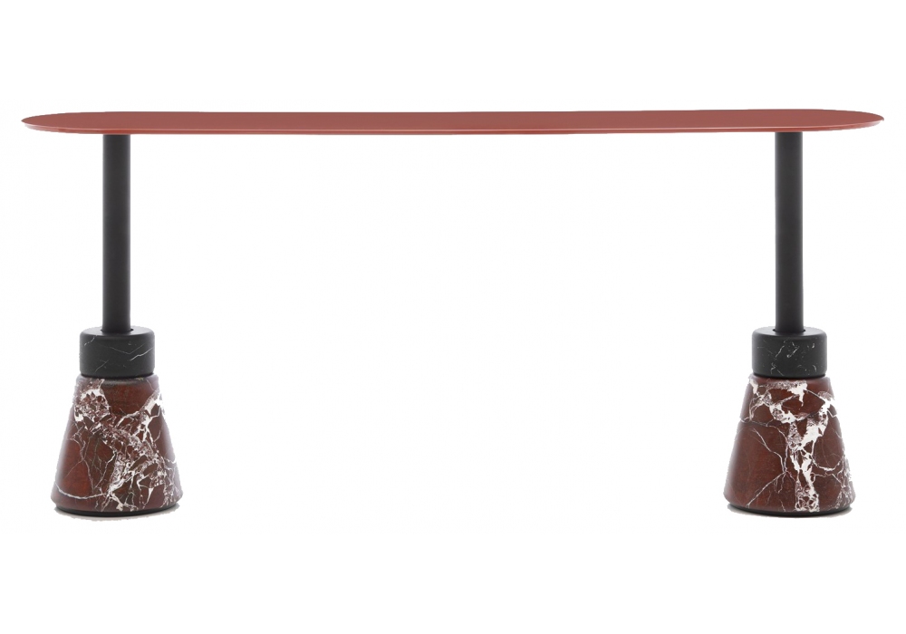 Menhir designed by Giotto Stoppino and Lodovico Acerbis for Acerbis is a console. It's characterized by pieces of marble stone in different sizes and finishes for the basement, and top in glossy lacquered or wood.