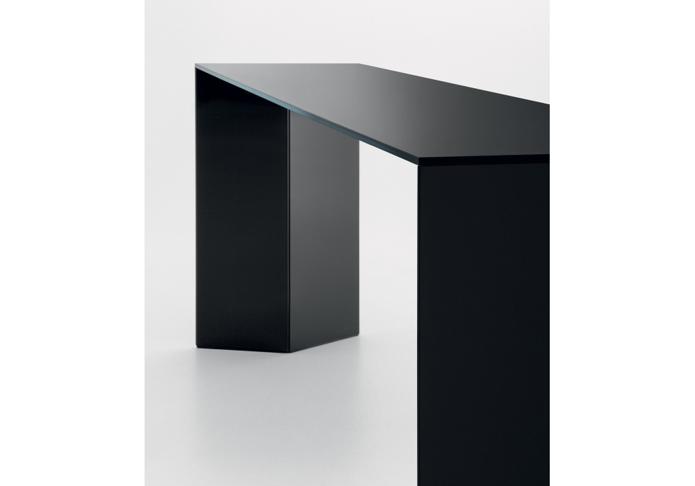Dolm designed by Oscar & Gabriele Buratti for Gallotti&Radice is a console with wooden base covered by 6mm tempered glass and 10mm extralight tempered glass top, painted as per samples in the bright or version. Also available version with glass painted with the exclusive "Cashmere" brushed finish in the colours gold grey and anthracite or patinated bronze.