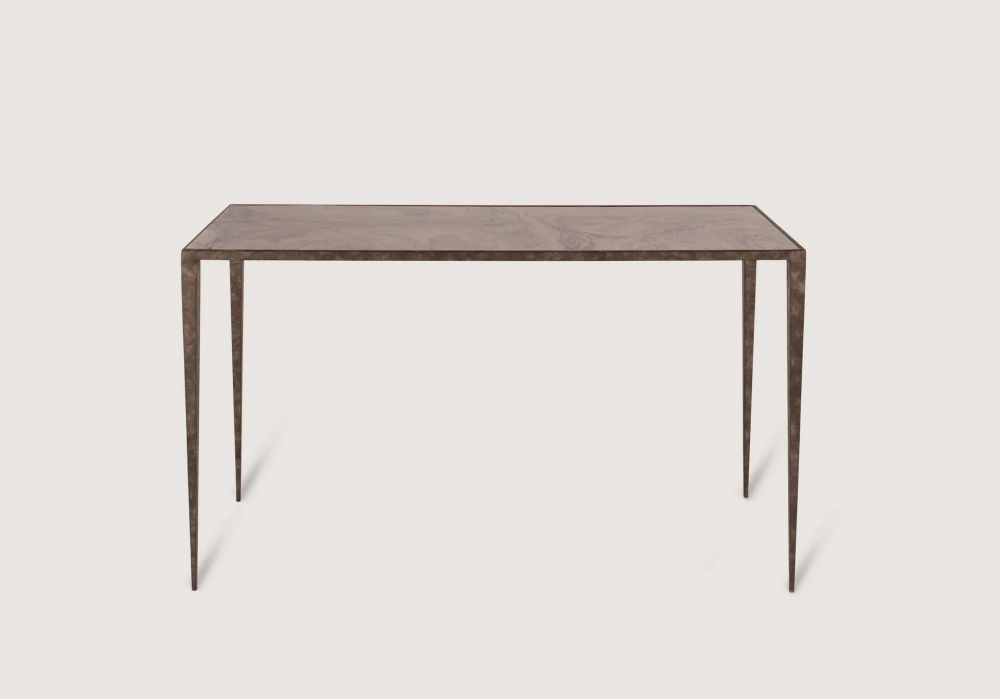 Salvatore designed and produced by Porta Romana is a quadrangular console with painted forged steel structure. The top is in tempered glass, marble or stone. Salvatore is available in different sizes and structure and top finishes.