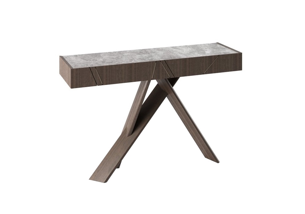 Axis designed by Christophe de Sousaper Gual Design is a console with structure in MDF covered in smoked eucalyptus leaf with 1 drawer. Oxidized brass applications on the front. Feet in ash wood. Finishing with acrylic paint. Luxury ceramic top in different finishes.