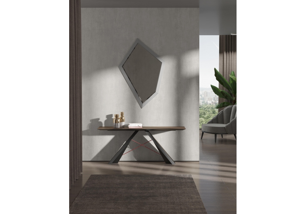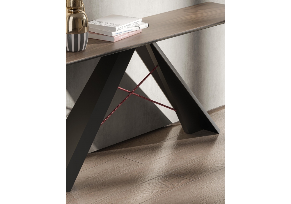 Charlize designed by Gualter Torres for Gual Design is a console with black painted iron structure and black lacquered top covered in veneered wood in different finishes.