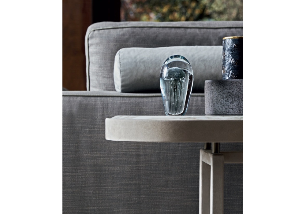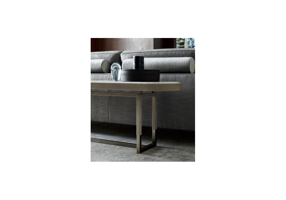 Isabel designed by Castello Lagravinese Studio for Opera Contemporary is a console upholstered in leather made with metal structure and marble top. Available in different finishes and dimensions.
