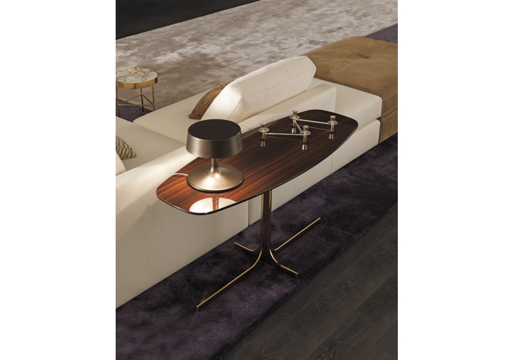Janus designed by Francesco Lucchese for MisuraEmme is a console with structure characterized by a coupling of two double "C"s in metal, so as to form a cross, in nickel-gold finish. Top in marble, matt or glossy essence or in glass. Available in different finishes.