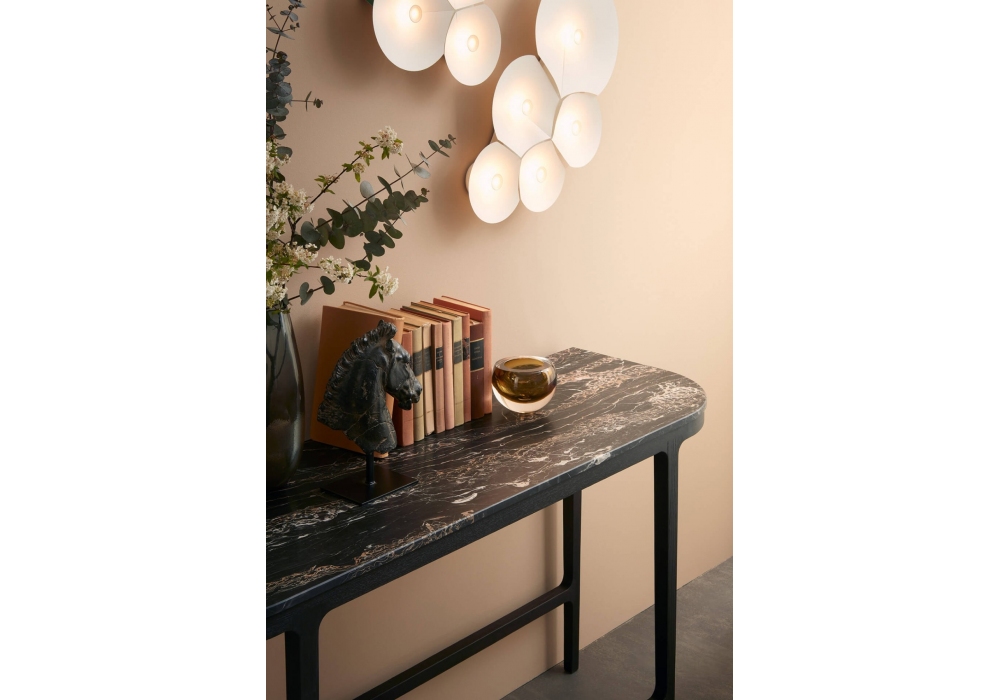 Victoria designed by Roberto Lazzeroni for Lema is a console with wooden structure with marble or glossy and matt lacquered top. Available in different finishes and in three dimensions.