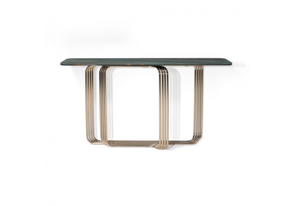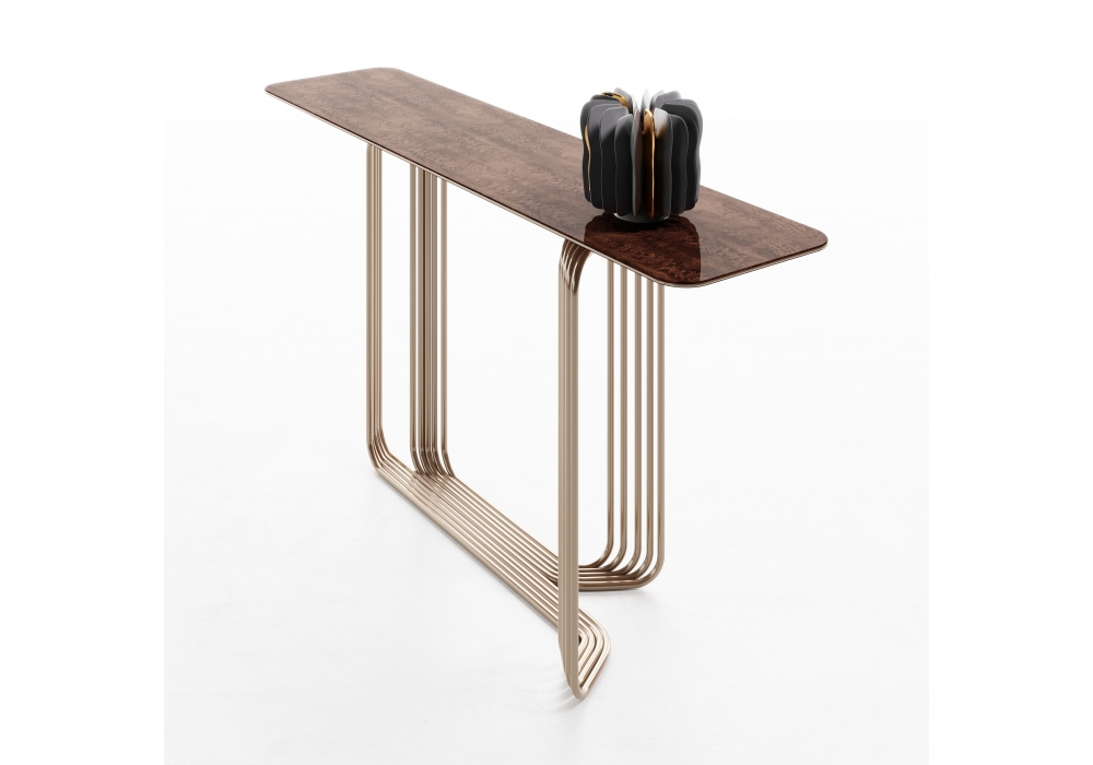 Vincent designed by Alessandro La Spada for Visionnaire is a quadrangular console with tubular stainless steel base. The top is in marble, smoked tempered glass, resin or walnut root. Vincent is available in different finishes.