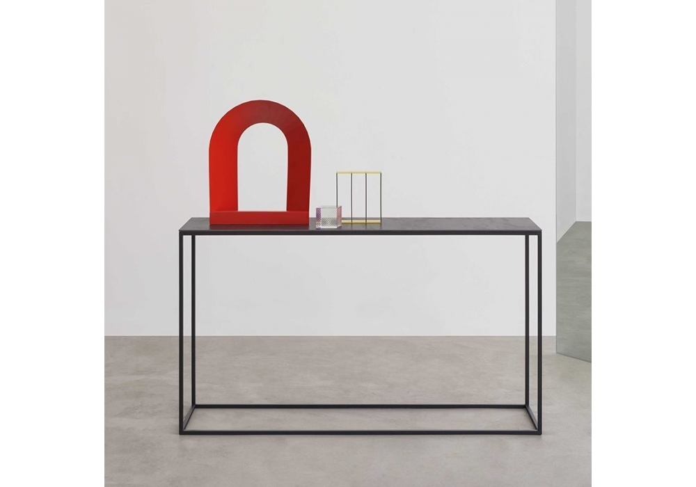Helsinki 15 designed by Caronni and Bonanomi for Desalto is a console with steel structure and die-cast joints. Top in tempered glass, ceramic, laminate or oak essence. Available in different finishes and sizes.