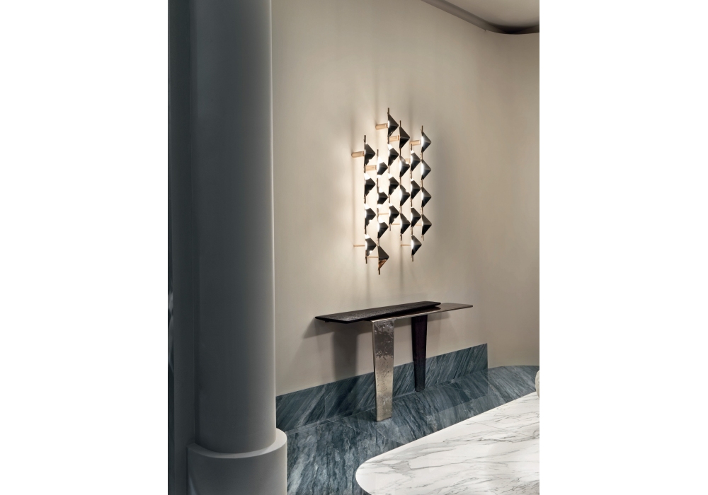 Lego designed by Draga & Aurel for Visionnaire is a quadrangular console structured by two pieces placed next to each other. Half of it is made of aged black concrete and the other half of cast aluminum with a hand-polished and pigmented surface with a gold finish. Lego is available in different finishes only half in aluminium.