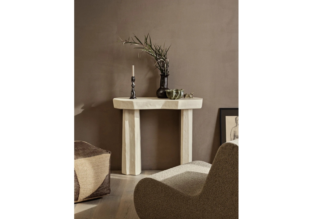 Staffa designed by Ferm Living is a console made of glassfiber reinforced concrete. Its striking appearance and robust design make it a fitting addition to any entryway, hallway or outdoor space, enhancing the area with its sculptural and stately character.