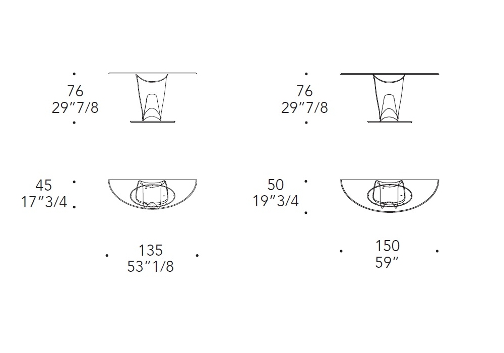 | Dimensions | 135 x 45 x H 76 cm; 150 x 50 x H 76 cm. |