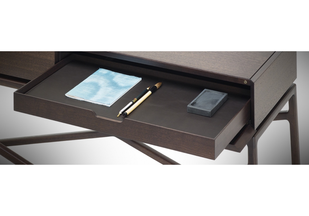 Teahouse designed by Christophe Pillet for Ceccotti Collezioni is a console made of solid American walnut and veneered plywood. There are two drop-leaf doors in which it is possible to insert sliding drawers in the same color as the structure.