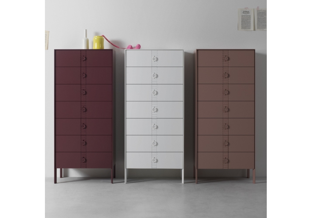 Another Day designed by Silvano Pierdonà for Capodopera is a high drawer chest made from elements joined at 45° and assembled manually in a matt lacquered finish. The opening takes place via push-pull, or via 3D buttons.