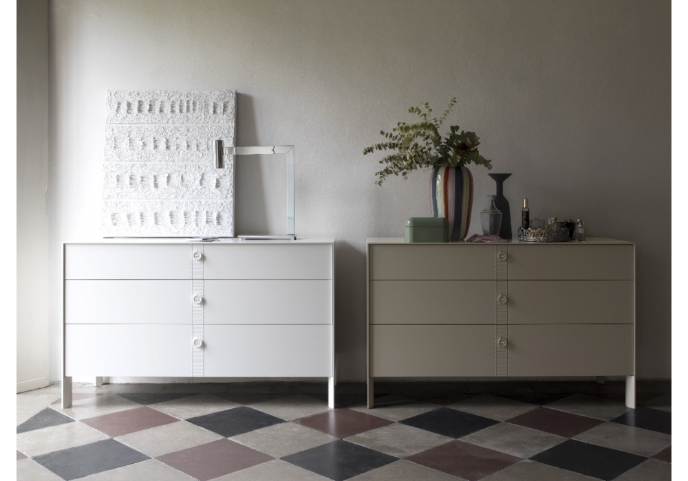 Another Day designed by Silvano Pierdonà for Capodopera is a chest of drawers made from elements joined at 45° and assembled manually in a matt lacquered finish. The opening takes place via push-pull, or via 3D buttons.