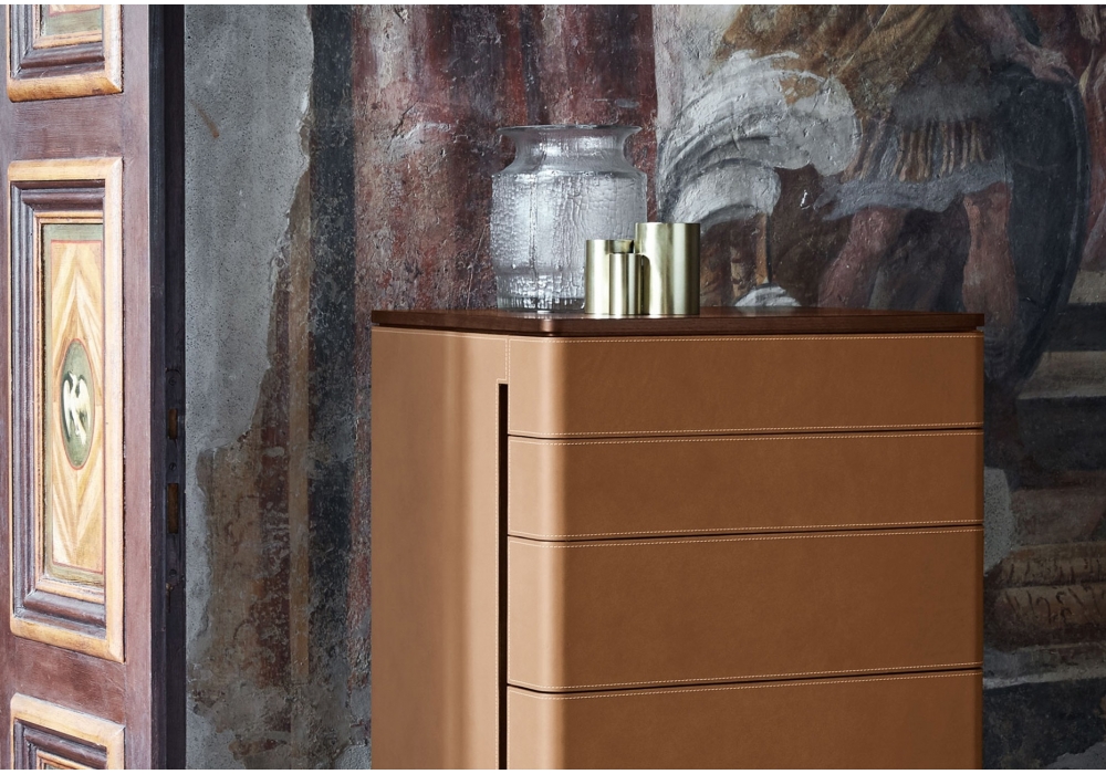 Fidelio Notte is a dresser designed by Roberto Lazzeroni for Poltrona Frau. Deliberately lean design, precious materials. Functional details become highly characteristic aesthetic elements, such as the recessed handles that provide