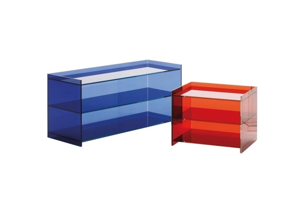 Dr Jekyll and Mr Hyde designed by Piero Lissoni for Glas Italia is a storage unit made of ground glass with a polished edge and heat-sealed. Available in various finishes.
