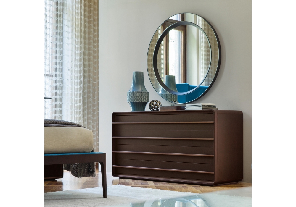 Aura designed by Marelli & Molteni for Porada is a chest of drawers with wooden frame available in different finishes and handles covered in leather.