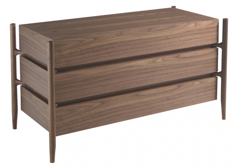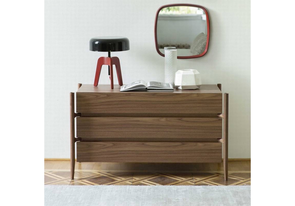 Regent 1 designed by T. Colzani for Porada is a chest of drawers with three drawers with soft closure in solid canaletta walnut. Available also in a leather upholstered version.