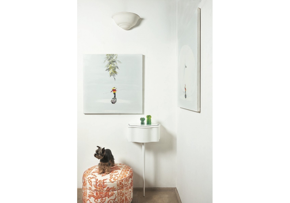 335 Carlino designed by Carlo Mollino for Zanotta is a service container made of painted wood in different finishes. Glass top in the same finish as the structure.