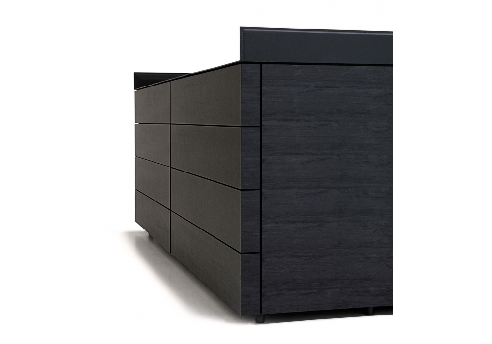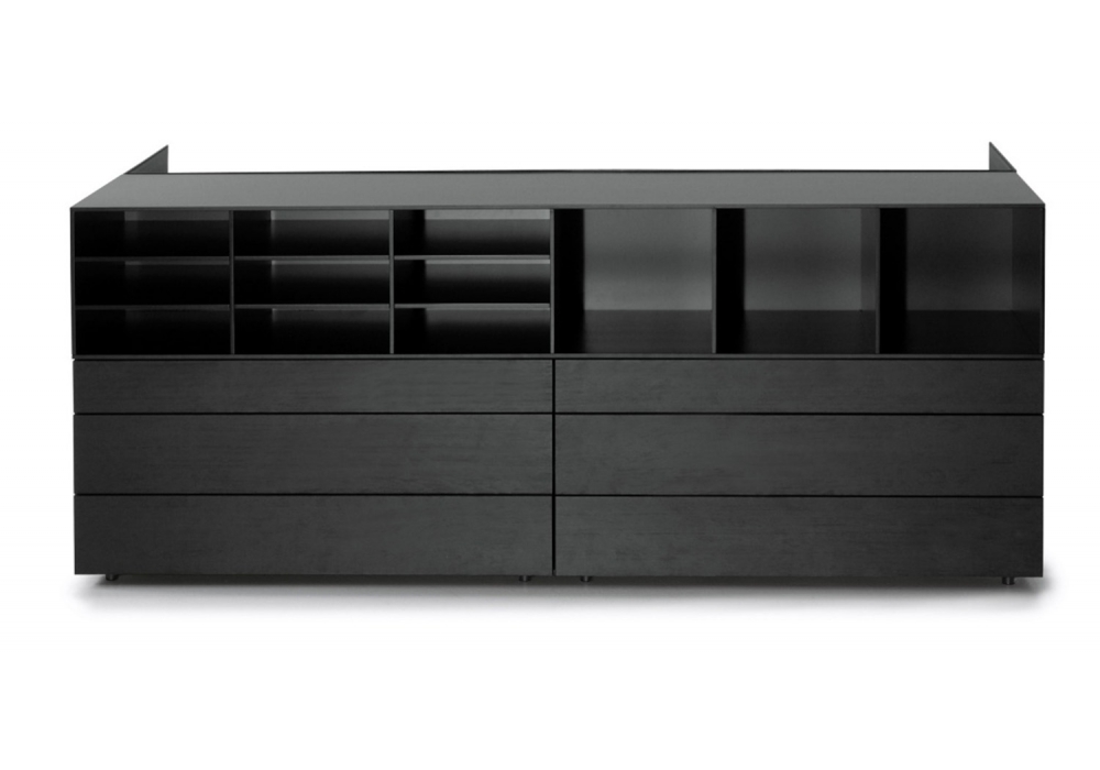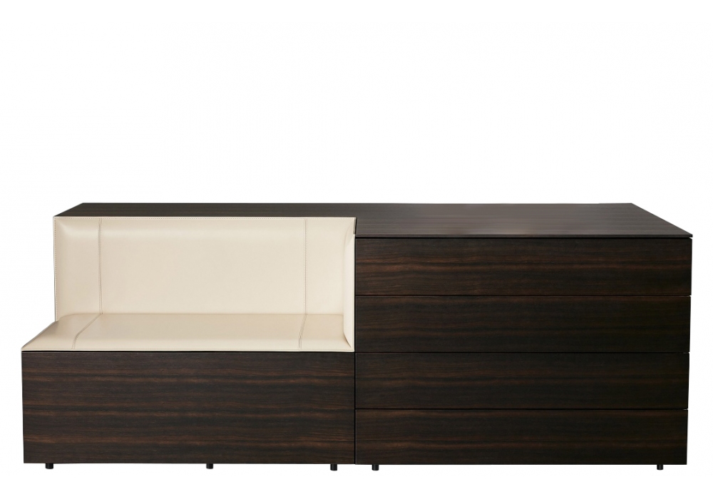 Hub designed by Gabriele & Oscar Buratti for Porro is an island chest of drawers with wooden structure available in different finishes. Available in different models, with the possibility of making the upper part in leather and crystal drawers.