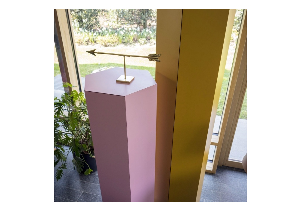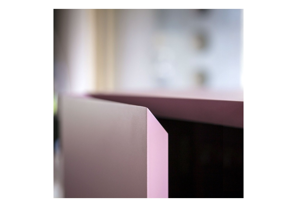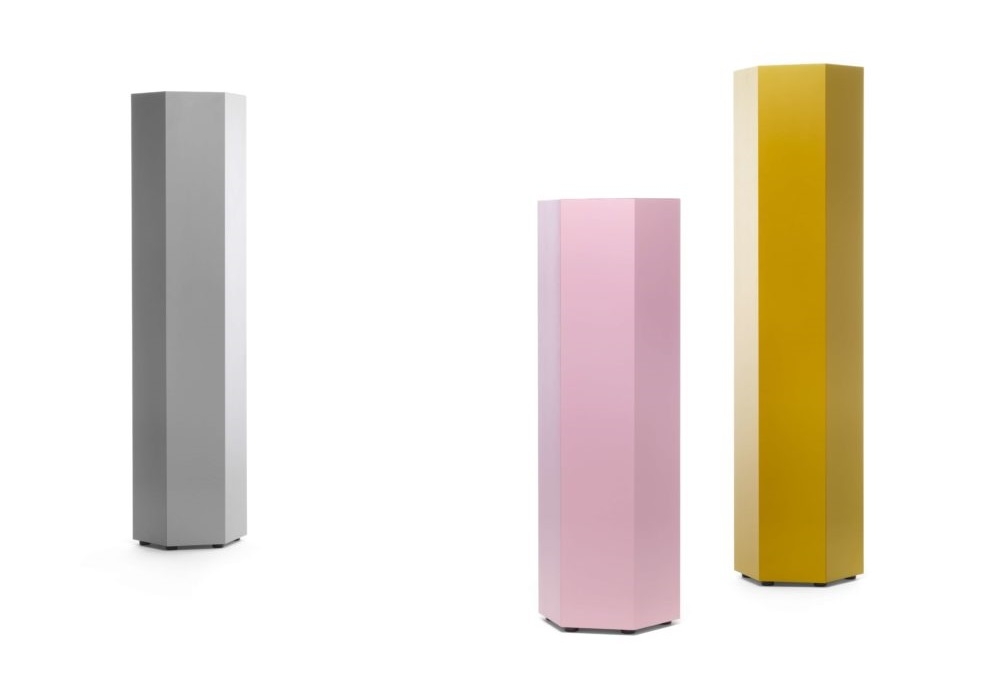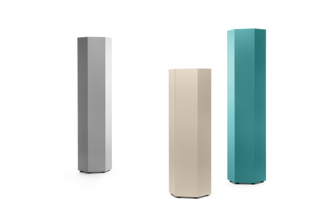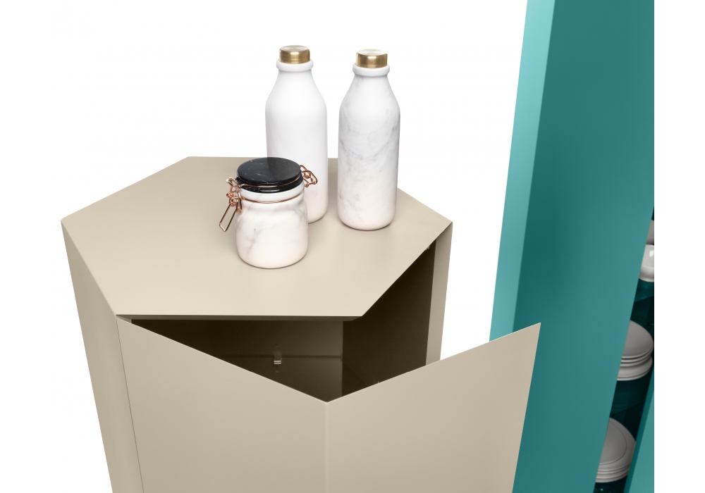Exagon designed by Claudio Bitetti per Mogg is a freestanding cabinet made of mdf with 1 door and multiple internal glass shelves. Available in different colours. Also available in 2 sizes.