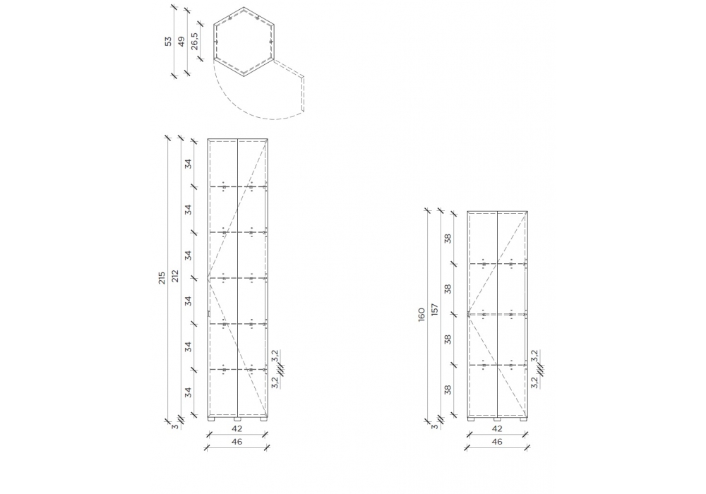 | Dimensions | 46 x 53 x H 160 cm; 46 x 53 x H 215 cm; |