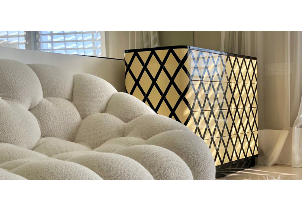 Napoleon designed by Matteo Cibic for Scarlet Splendour is a chest of drawers made of MDF, teak wood and resin insert.