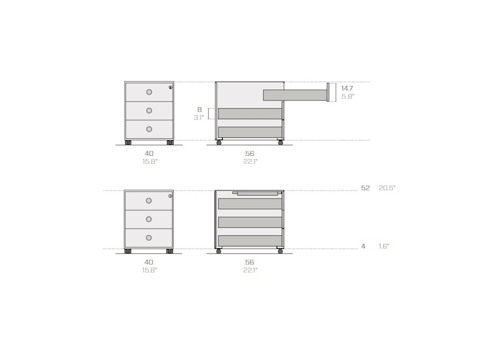 Mya designed by Sandro Fantin for Fantin is a sliding and silent metal chest of drawers with built-in handle. Available in different finishes and versions.