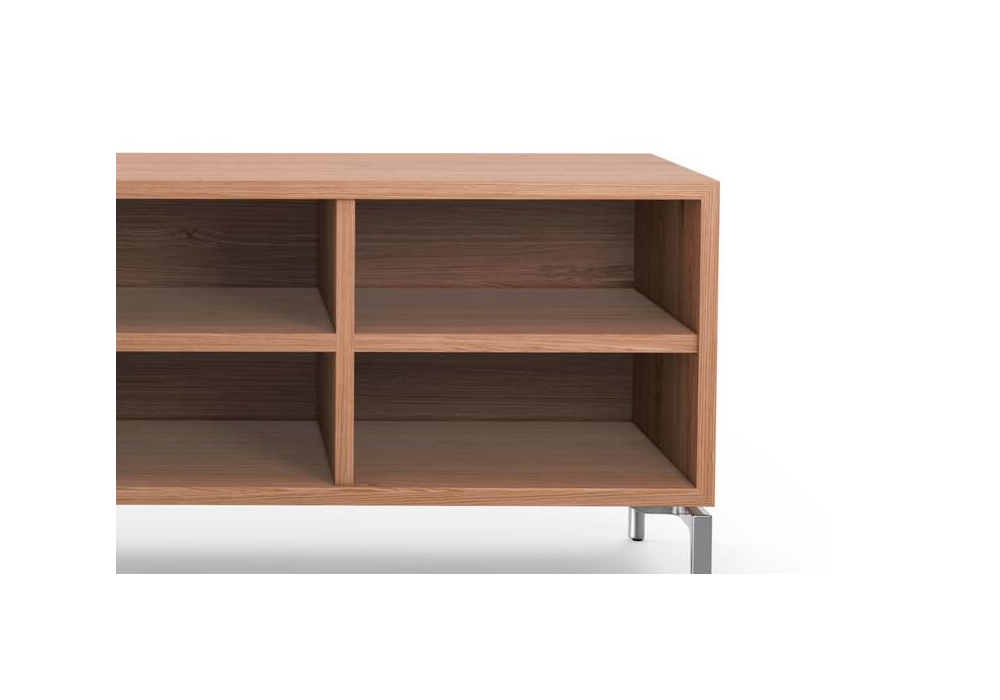 L29 Volage Ex-S designed by Philippe Starck for Cassina is a chest of drawers with open compartments or with drawers, made with structure in matt or glossy lacquered wood, canaletto walnut or black stained ash and aluminum base. In the version with open compartments it is possible to insert leather or wicker baskets.