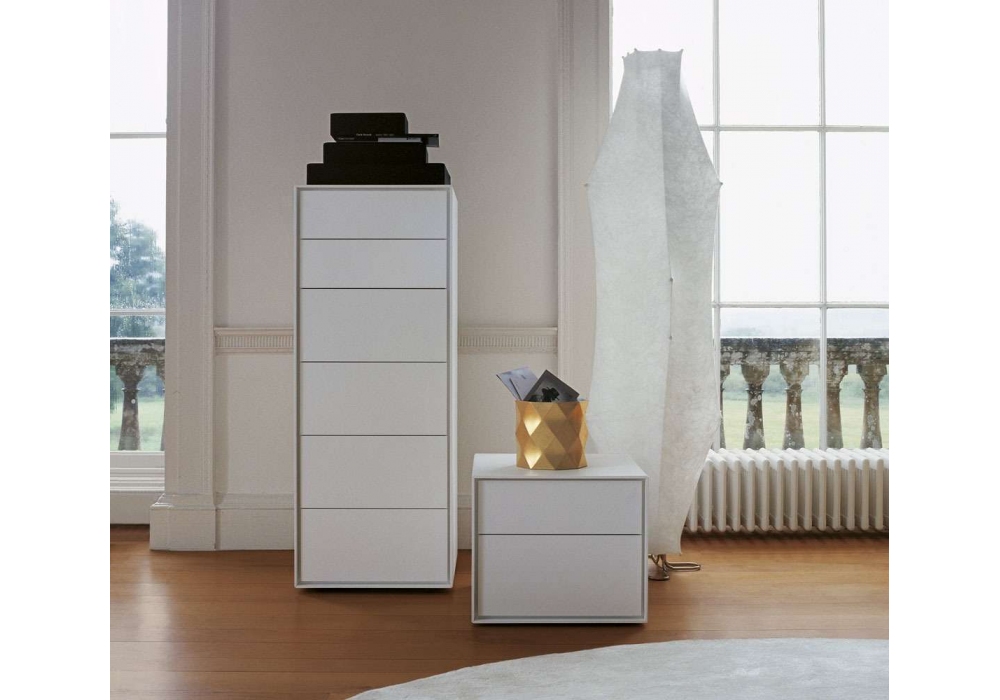 Dado designed by Studio Kairos for B&B Italia is a collection of chest of drawers with external structure satin varnished. The front of the drawers is available in a matt or glossy finish, with the upper drawers in the same finish as the lower ones or in a choice of colors in the collection.