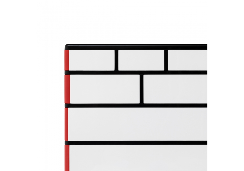Rosa designed by George J. Sowden for Memphis Milano is a chest of drawers made of lacquered wood, top in plastic laminate.