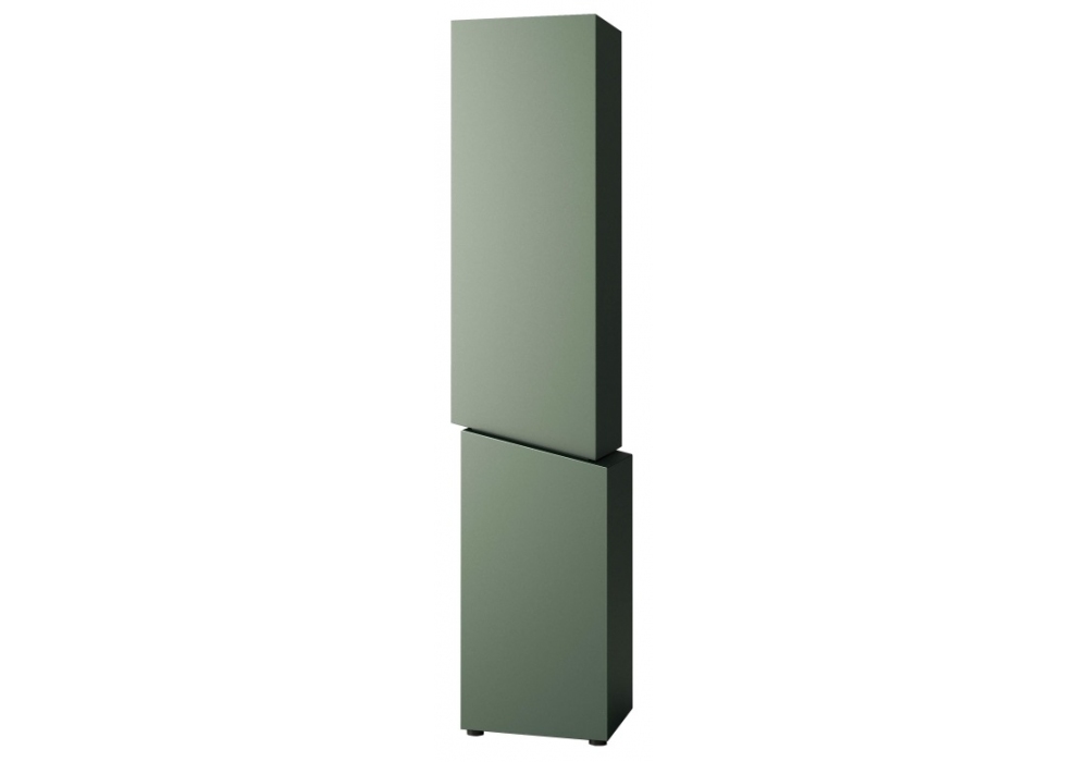 Samurai designed by Simone Fanciullacci for Minotti Italia is a self-supporting container in agglomerated wood with two independent hinged doors, five internal shelves, three of which can be moved and an internal drawer. Embossed finish available in different colours. Right or left door opening.
