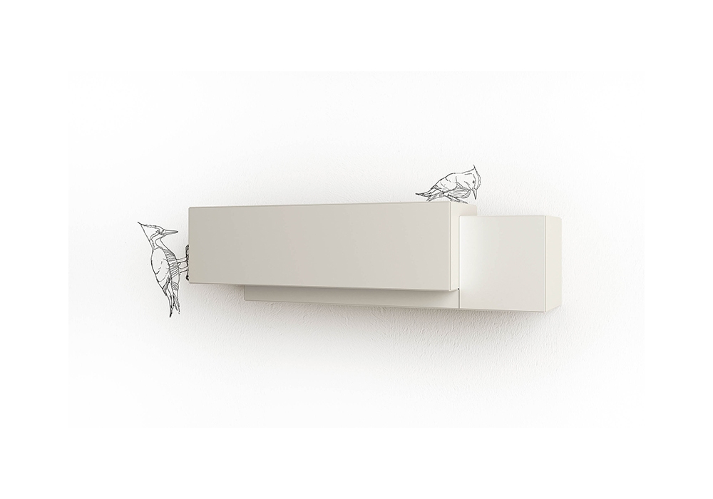 Shore designed by DSH for Minotti Italia is a two-volume hanging container in agglomerate wood, tilt or tilt door, hinged door. Embossed finish available in different colours. Compartment available in the same colour as the container or in a different colour.