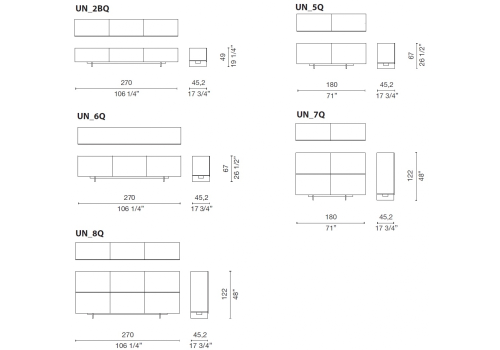 | Dimensions | 270 x 45.2 x H 49 cm; 180 x 45.2 x H 67 cm; 270 x 45.2 x H 67 cm; 180 x 45.2 x H 122 cm; 270 x 45.2 x H 122 cm. |