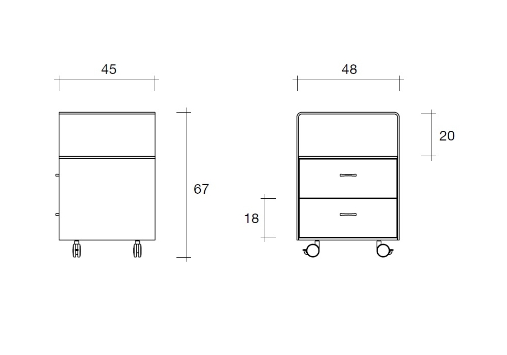 Rialto designed by CRS Fiam is a chest of drawers in 8 mm curved transparent glass. The drawers have white lacquered wood frame. The drawer unit features 2 drawers with automatic soft closure system. Chromed wheels and handles.