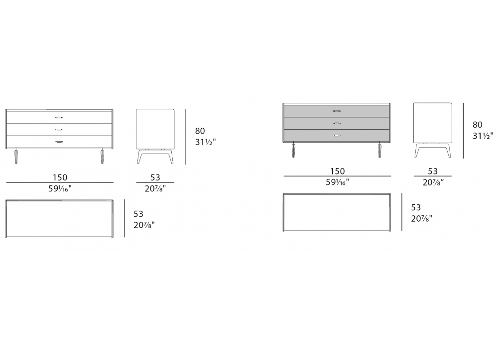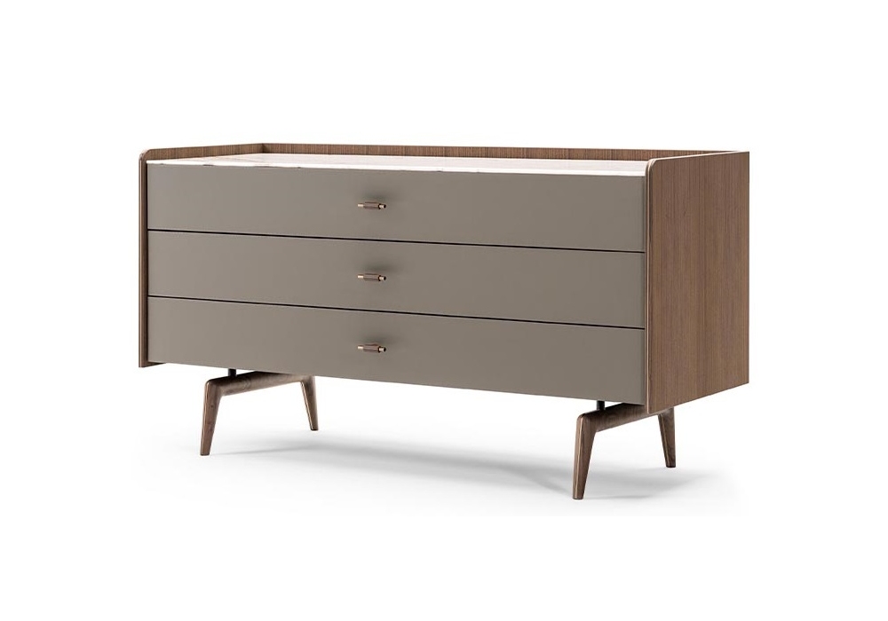 Blues designed by Giuseppe ViganĂ² for Turri is a chest of drawers with structure in veneered walnut wood and legs in solid walnut. The fronts can be made of veneered walnut wood or covered in leather. Top in marble, leather or veneered walnut.