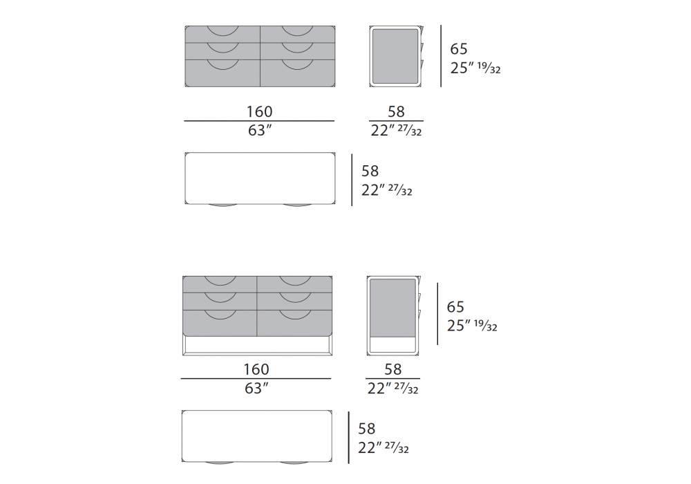 | Dimensions | 160 x 58 x H 65 cm; 160 x 58 x H 85 cm. |