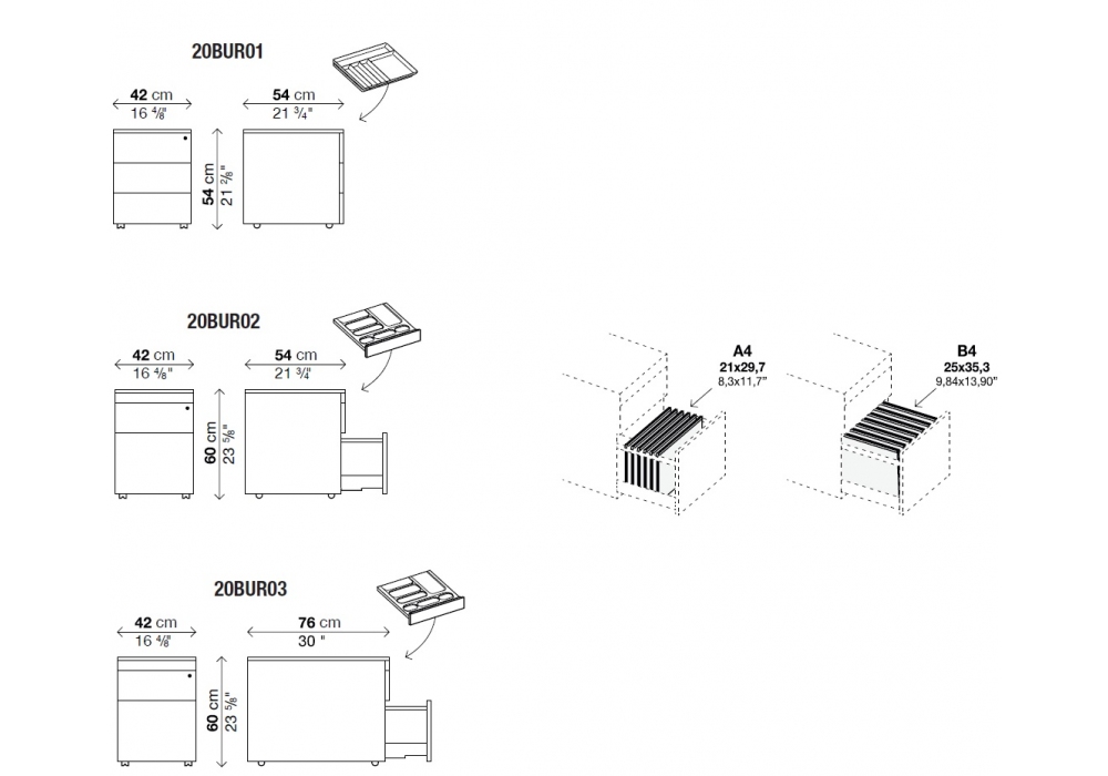 | Dimensions | 42 x 54 x H 54 cm; 42 x 54 x H 60 cm; 42 x 76 x H 60 cm. |