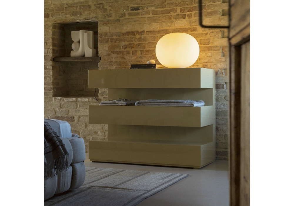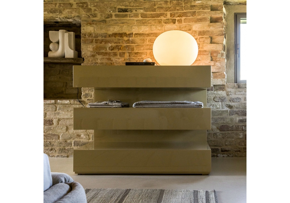 And designed by Fabio Bortolani and Stefano Maggi for Mogg is a chest of drawers made of embossed or glossy lacquered MDF. Available in different finishes.