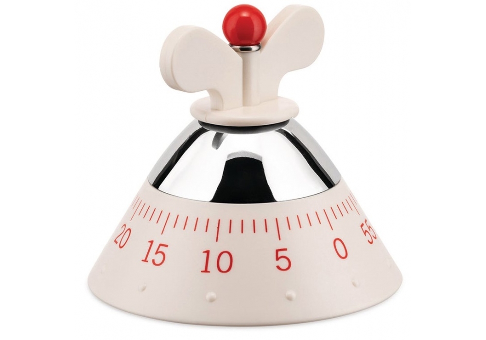 The Kitchen Timer designed by Michael Graves for Alessi is made of thermoplastic resin. Available in three colours.
