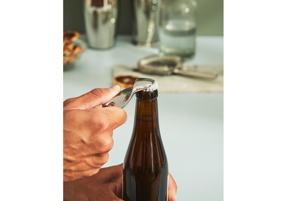Bulla designed by Valerio Sommella for Alessi is a bottle opener in 18/10 stainless steel.