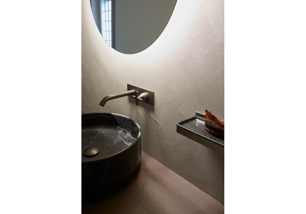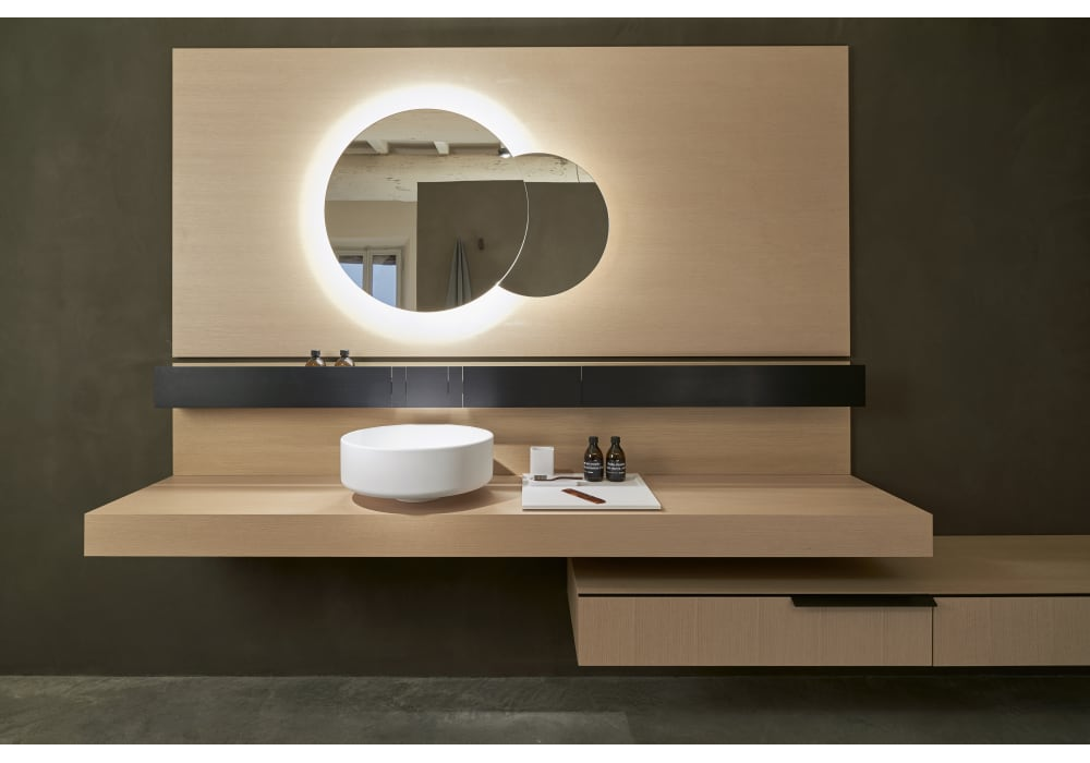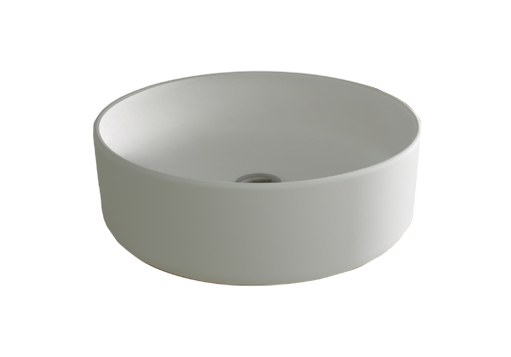 Bjhon 1 designed by Angelo Mangiarotti for Agape is a circular washbasin made of marble or Cristalplant® biobased in different finishes.