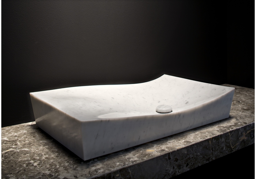 Unna Vanity designed by Marco Piva for Lithea is a countertop washbasin made of marble, available in different finishes and 2 dimensions.