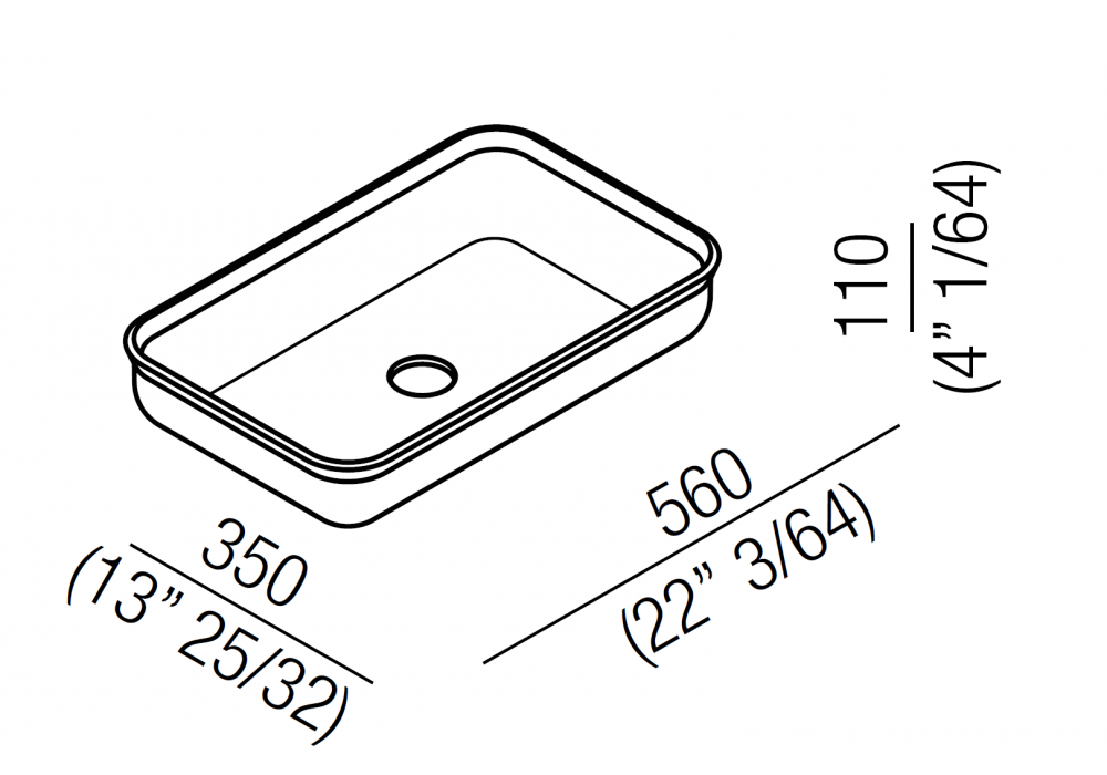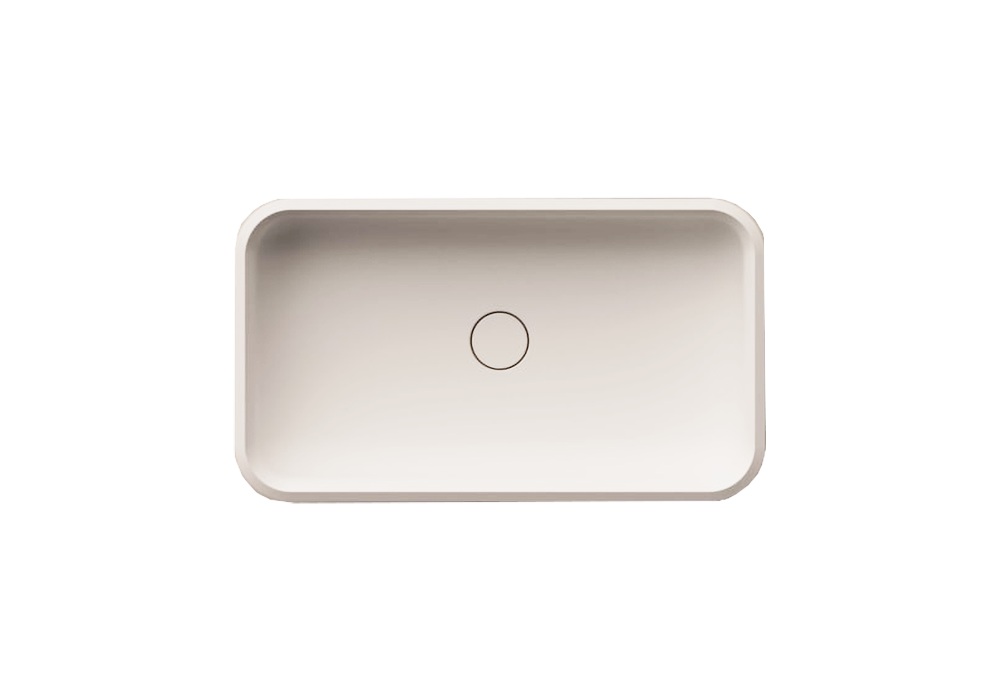 Undici designed by Benedini Associati is a countertop washbasin made of white solid surface with thermoforming processing. There is no hole for the tap, free drain. Drain with matching cap included.