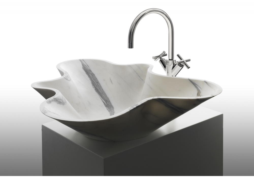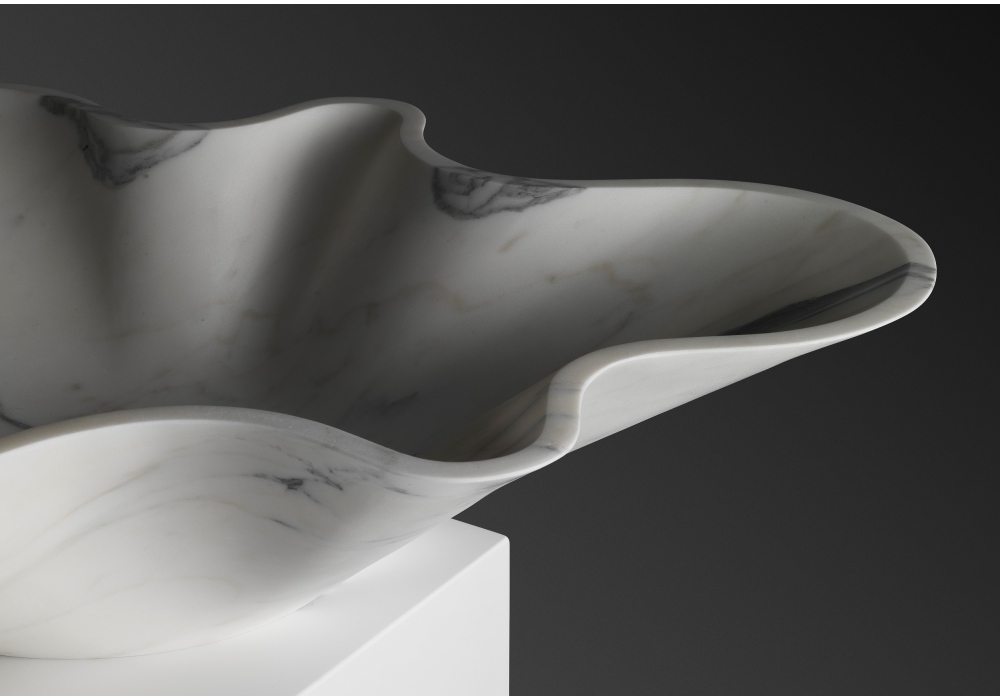 Bowl N° 1 designed by Enzo Berti for Kreoo is a wavy-shaped washbasin made entirely of marble. Available in different finishes.