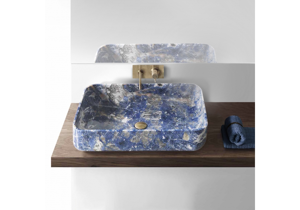 Bowl N° 9 designed by Enzo Berti for Kreoo is a rectangular-shaped washbasin with rounded edges and corners made of marble. Chromed, bronzed gold or matching marble click-clack drain. It is possible to customize the inside of the washbasin with leaf finishes or in the range of RAL colours.